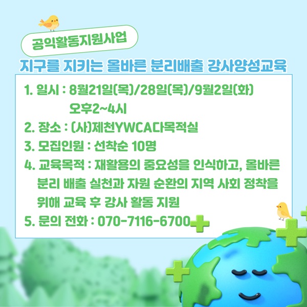 올바른 분리배출을 위한 강사양성 교육생 모집 안내